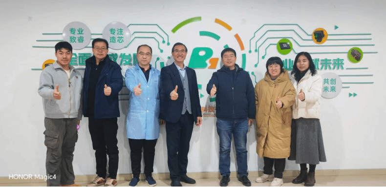 21日,李春雷院长一行人继续前往无锡参观校友申文忠创办的江苏睿芯源科技有限公司并交流。申文忠董事长亲自引领参观研发部门与生产车间,近距离领略了公司的技术底蕴和产品魅力,随后双方就产学研合作、人才培养及技术创新等多个层面展开了全面而深入的探讨。