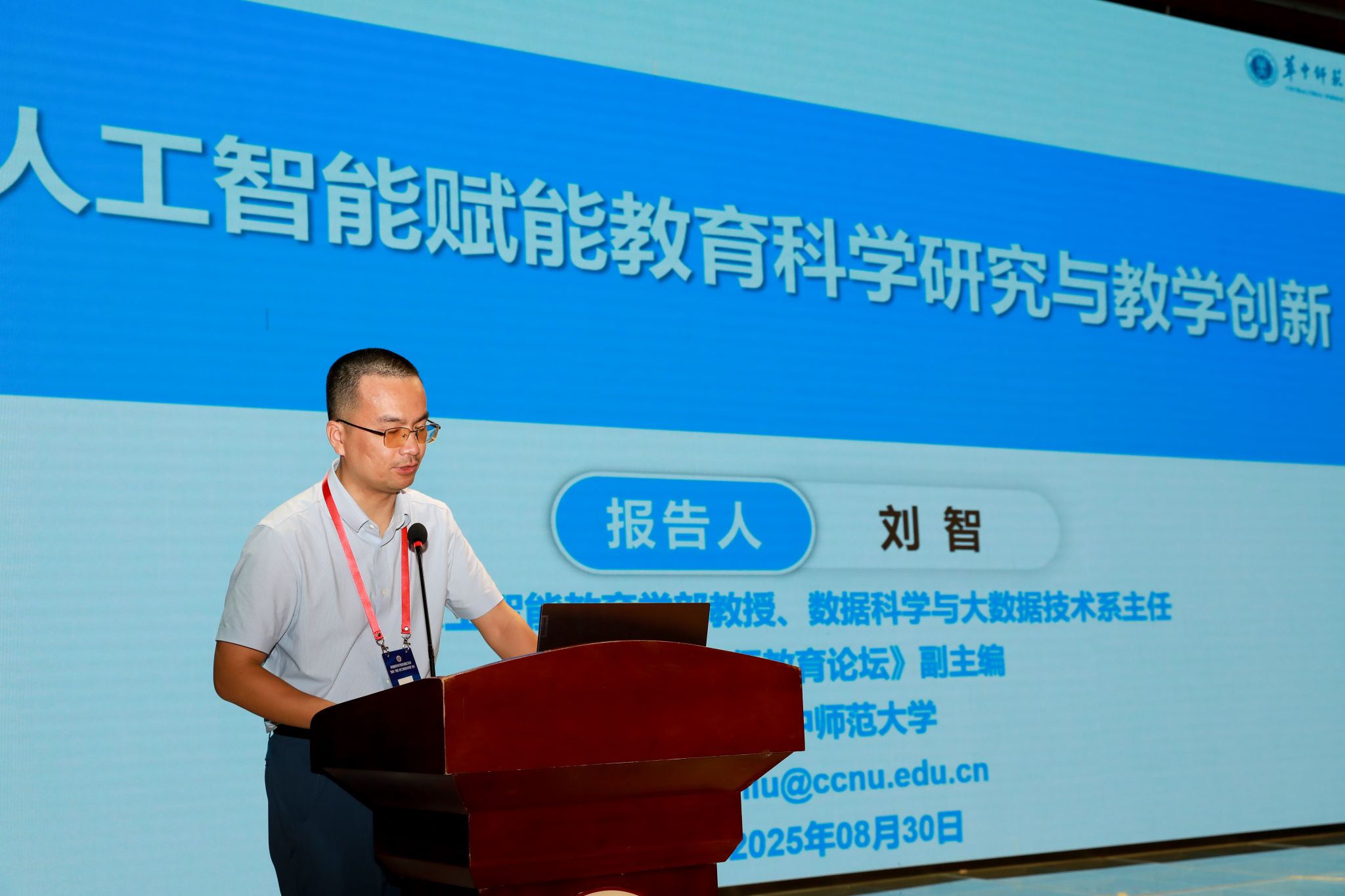 华中师范大学人工智能教育学部,数据科学与大数据技术系主任刘智教授作《人工智能赋能教育科学研究与教学创新》主旨报告。