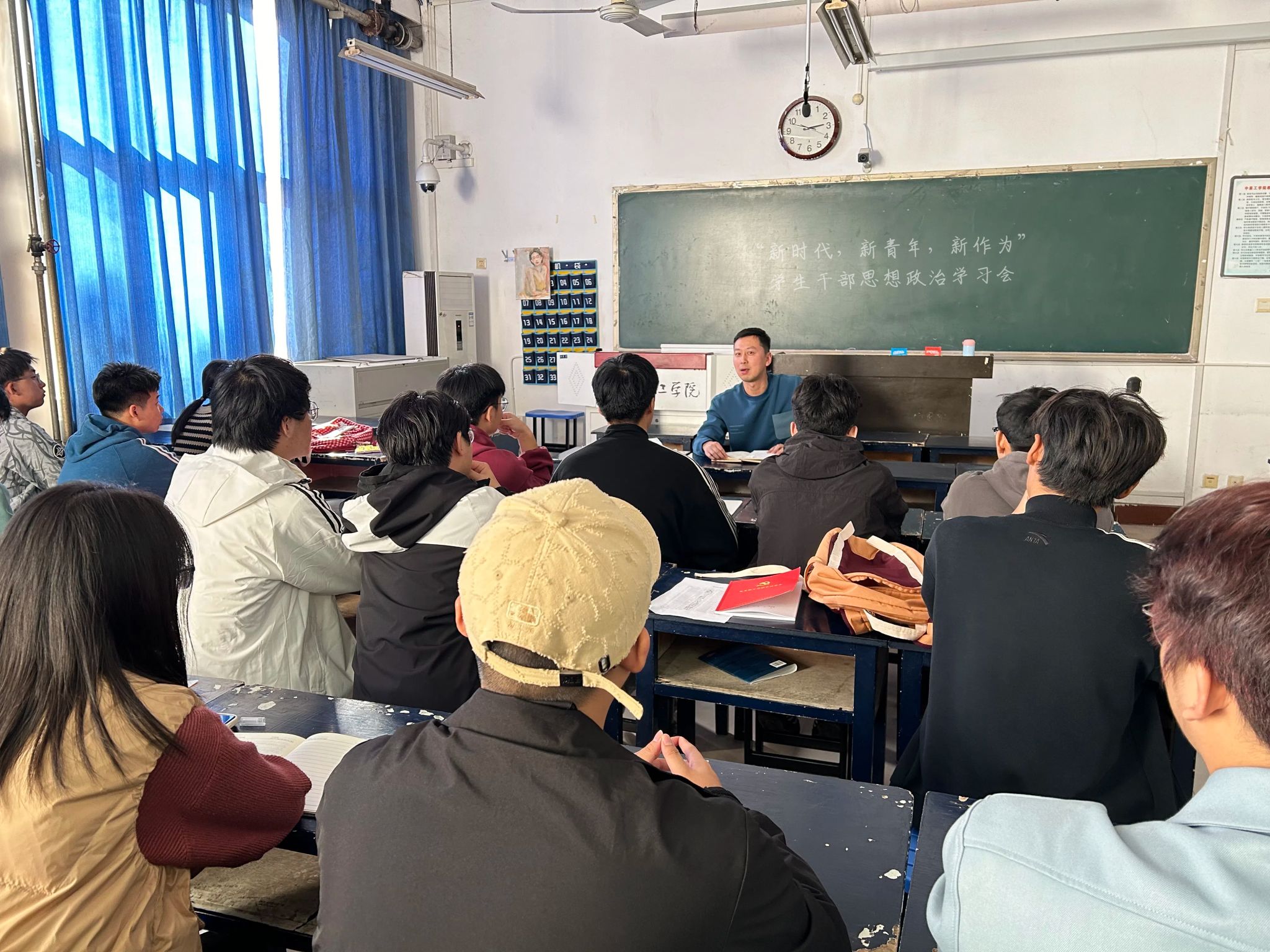 “新时代,新青年,新作为”学生干部思想政治学习会在龙湖校区11号楼召开。学生工作办公室主任出席会议,各班级团支书、班长、学工办助理参加会议。