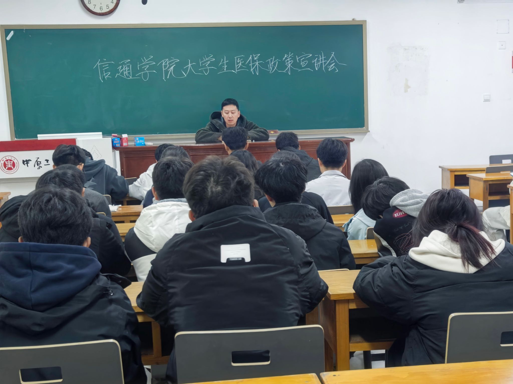 在3号教学楼举办2025级大学生医保政策宣传活动。此次活动由新生辅导员魏晓宇主持,全体2025级班委参加。