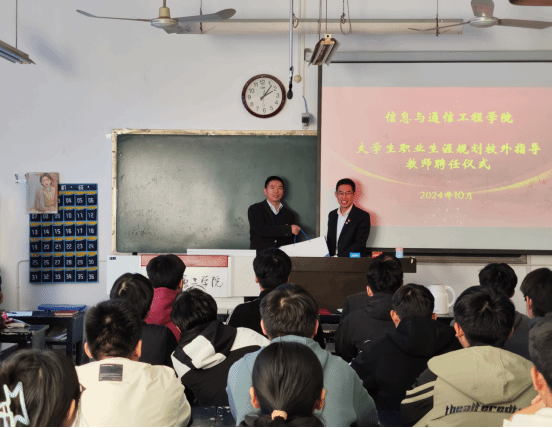 在龙湖校区举办职业生涯规划校外指导教师聘任仪式。测控2003级校友、新乡北方车辆仪表有限公司总经理范光华,学院党总支书记邹海林、执行院长李春雷、副书记王辉、工会主席路向阳出席,全体辅导员以及70余名学生代表参加本次活动。